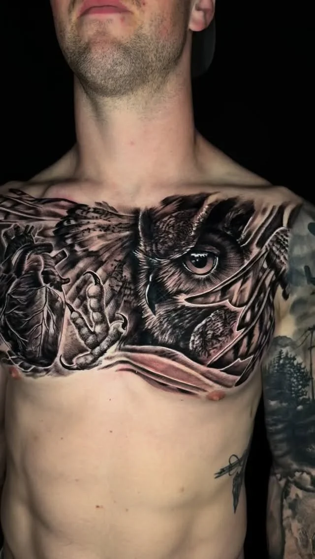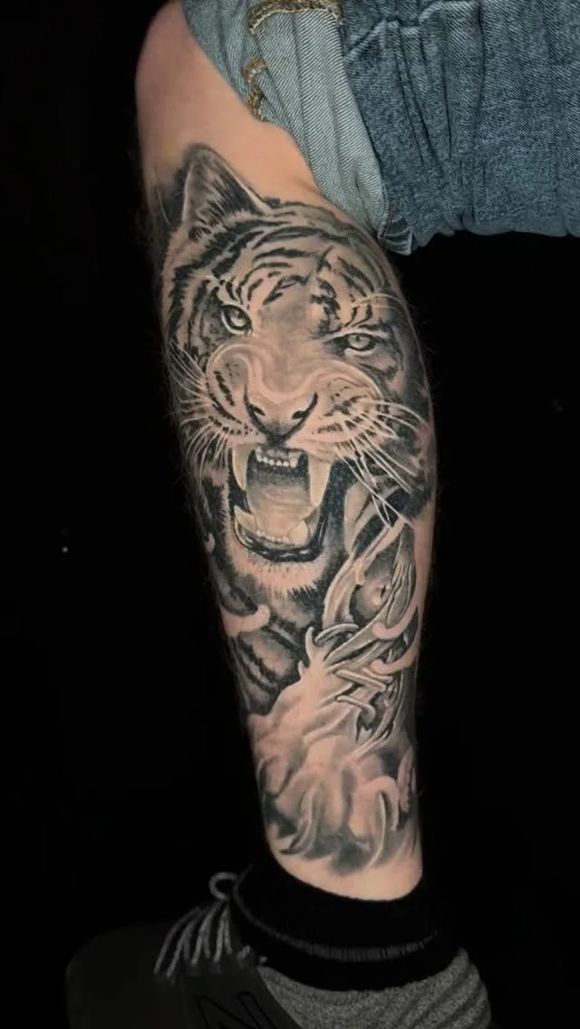 Starting out with many styles, he has found his home in the deep contrasts of black and grey realism tattoos.